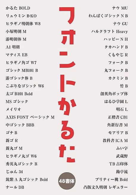 °õºþʪ¤äWEB¤ä¥Æ¥ì¥ÓÈÖÁÈ¤Ê¤É¤ÇÆü¡¹Ìܤˤ·¤Æ¤¤¤ë¿¼ï¿Íͤʥե©¥ó¥È¡£¤½¤ÎÃæ¤«¤é¡¢ÆëÀ÷¤ß¤Î¤¢¤ë¤â¤Î¡¢¥æ¥Ë¡¼¥¯¤Ê¤â¤Î¡¢»È¤¤¤ä¤¹¤¤¤â¤Î¤Ê¤É¡¢48¼ïÎà¤òÁª¤Ó¡¢¤«¤ë¤¿¤òÀ©ºî¤·¤Þ¤·¤¿¡£(½Ðŵ¡§¥Õ¥©¥ó¥È¥«¥ë¥¿¸ø¼°web¥µ¥¤¥È¡¡about¥Ú¡¼¥¸)