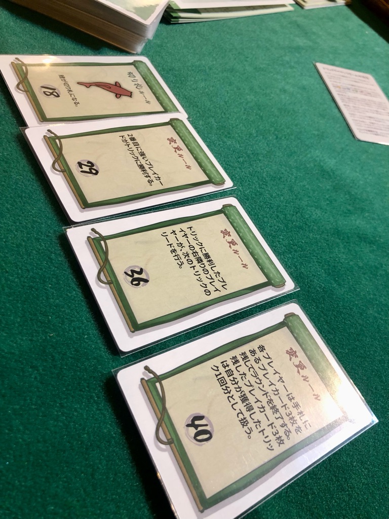 ¥Þ¥¹¥È¥Õ¥©¥í¡¼(ºÇ½é¤Ë½Ð¤·¤¿¿Í¤Î¥¹¡¼¥È¤ÈƱ¤¸¤â¤Î¤ò½Ð¤¹)¡¢¿ô»ú¤Î¹â¤¤¿Í¤¬¥È¥ê¥Ã¥¯¾¡Íø¡¢1¾¡Íø¤¬1ÅÀ¤È¤¤¤¦´ðËܥ롼¥ë¤Ë²Ã¤¨¤Æ¡¢Àè¤Û¤É½Ð¤·¤¿¥«¡¼¥É¤Î¥ë¡¼¥ë¤¬Äɲ䵤ì¤ë¡£¤Ç¤Ï1¥é¥¦¥ó¥ÉÌܤÎÄɲå롼¥ë¤Ï¡Ä