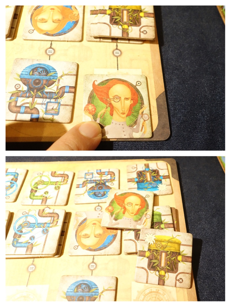 ¥¹¥¿¡¼¥È¥×¥ì¥¤¥ä¡¼(º£²ó¤ÏÁê¼ê)¤¬¡¢¤³¤ì¤é3Ëç¤Î¤¦¤Á¤«¤é1Ëç¤òÁª¤Ö¡£¤½¤·¤Æ¤½¤ì¤ò¼«Ê¬¤ÎÎó¤ËÃÖ¤¯¤«¡¢¿¿¤óÃæ¤ÎÎó¤Î¥¿¥¤¥ë¤É¤ì¤«¤Ë½Å¤Í¤ë¡£¥¹¥¿P¤¬½ª¤ï¤Ã¤¿¤é¼¡¤Î¥×¥ì¥¤¥ä¡¼¤¬Æ±¤¸¤è¤¦¤Ë¥¿¥¤¥ëÁªÂò¡¢3ËçÌܤϥ¹¥¿P¤ËÌá¤Ã¤Æ¤Ã¤Æ´¶¤¸¡£