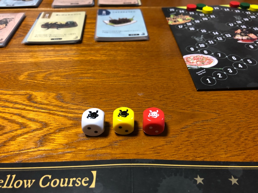»ä¤Ï¥À¥¤¥¹1¤Ä¤ò¤â¤é¤Ã¤ÆÄ´Íý¤òÁªÂò¡£Ä´Íý¤ò¤¹¤ëºÝ¤Ë¤Ï¡¢Ãæ±û¤Ë½Ð¤Æ¤¤¤ë¥«¡¼¥É1Ëç¤ò»ØÄꤷ¤Æ¥À¥¤¥¹¤ò¿¶¤ë¡£