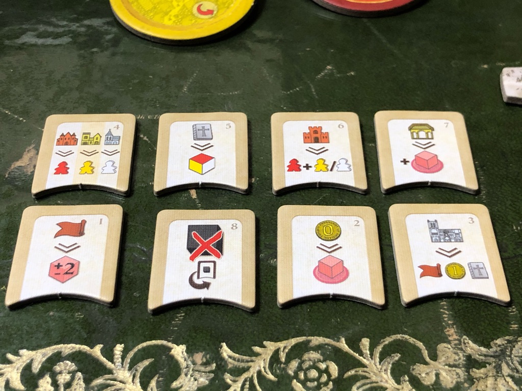 ¥²¡¼¥àÃæ¤Î8Æü´Ö(8¥é¥¦¥ó¥É)¤Ï¡¢¸áÁ°¤È¸á¸å¤Ëʬ¤«¤ì¤Æ¤¤¤Æ¡¢¥Ü¡¼¥ÉÃæ±û¤ÎÇò¤¤4¤Ä¤ÎÏȤ¬¸áÁ°¡¢¹õ¤¤4¤Ä¤ÎÏȤ¬¸á¸å¤ò¼¨¤·¤Æ¤ë¤Î¡£